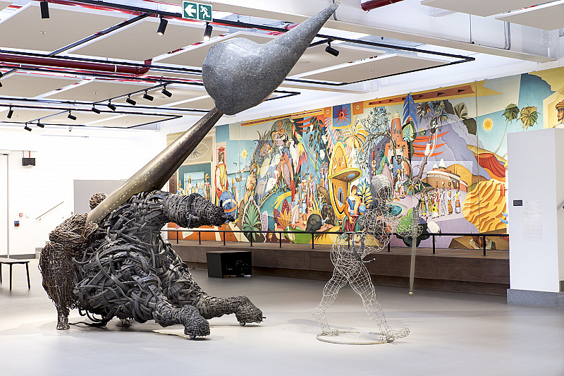 The animal and human figures in the work reflect aspects of human and animal behaviour as well as the relationship between the two, always an important theme for Botha.