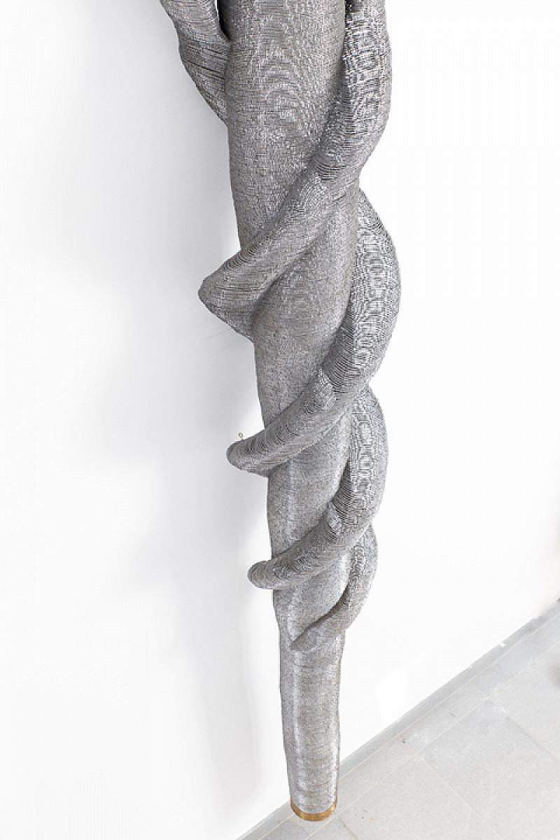 Oltmann’s large wire sculptures that make up this commission reference this long history. They call to mind the industrial processes that are involved in the mining industry but also suggest the importance of human labour in the extraction of precious metals from the earth.