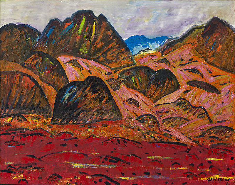 This relatively late painting demonstrates the shift in Bradshaw’s output to bold, rich, expressionist landscape painting.