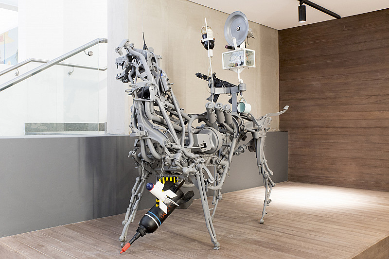 One of the most important works in the Goodman Gallery exhibition of the same name, this monumental sculpture combines the savagery of the metaphor of the dog with Bester’s signature use of RECYCLED materials.