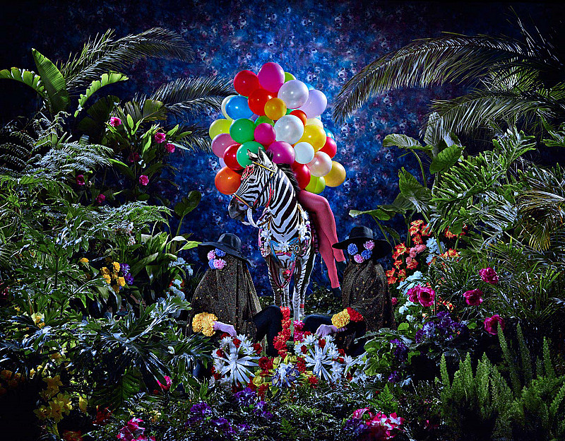 The rider of the zebra is the ‘Future White Woman’ of the title, a character born in 2008 whom Ruga has performed many times and who is partly autobiographical. Here, however, he has obscured his face to universalise the image. He draws parallels between apartheid and the rise of fascism, presenting his work as a truly utopian document that satirises an existing situation, that of the queer black experience in the post-apartheid landscape.