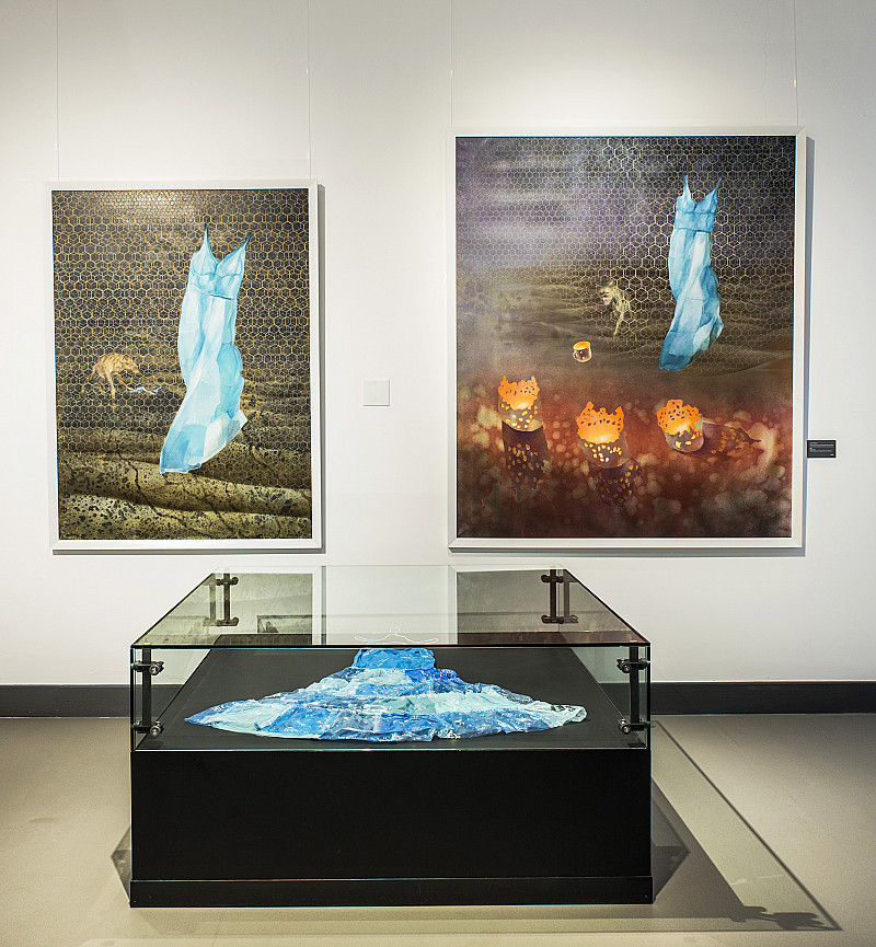 The other is the story of Phila Ndwande (the woman who kept silent) who was tortured and kept naked by security police for weeks in order to compel her to inform on her comrades. Before she was eventually executed she made a pair of panties out of a plastic bag to cover her nakedness, and it is to this garment, found on her body when it was exhumed, that the blue dress refers.